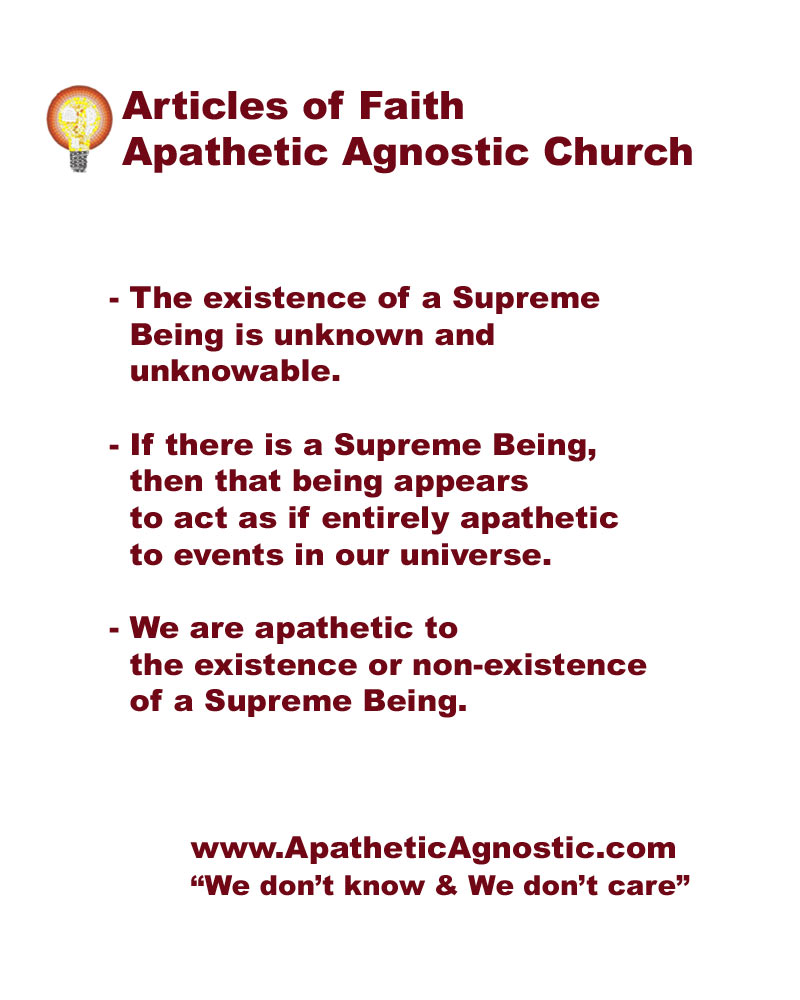 Our store (now closed) was opened to provide a range of products promoting Apathetic Agnosticism, not to make a profit. (And we have been quite successful at not making a profit.)