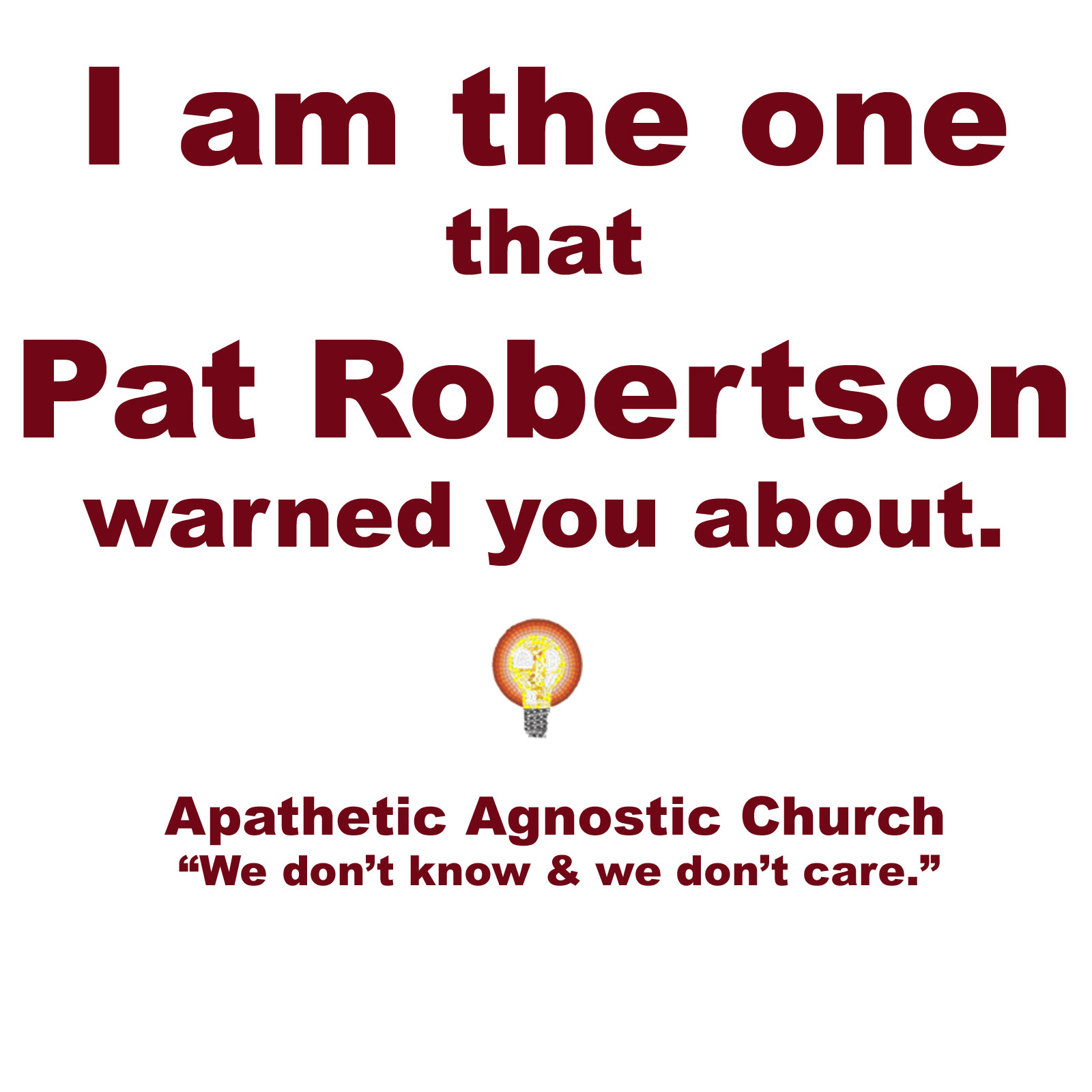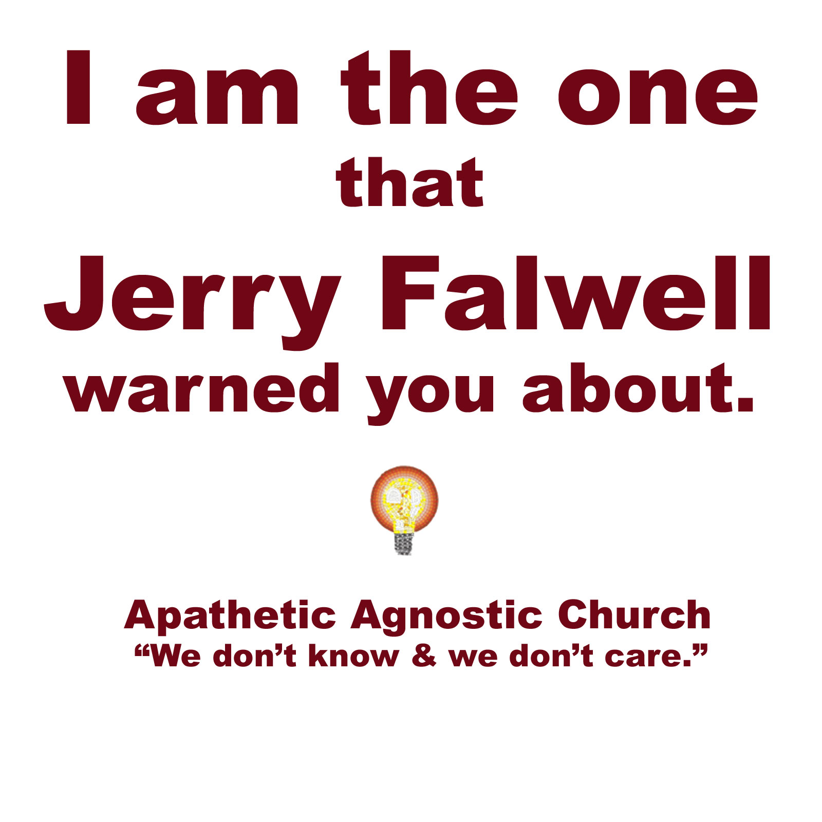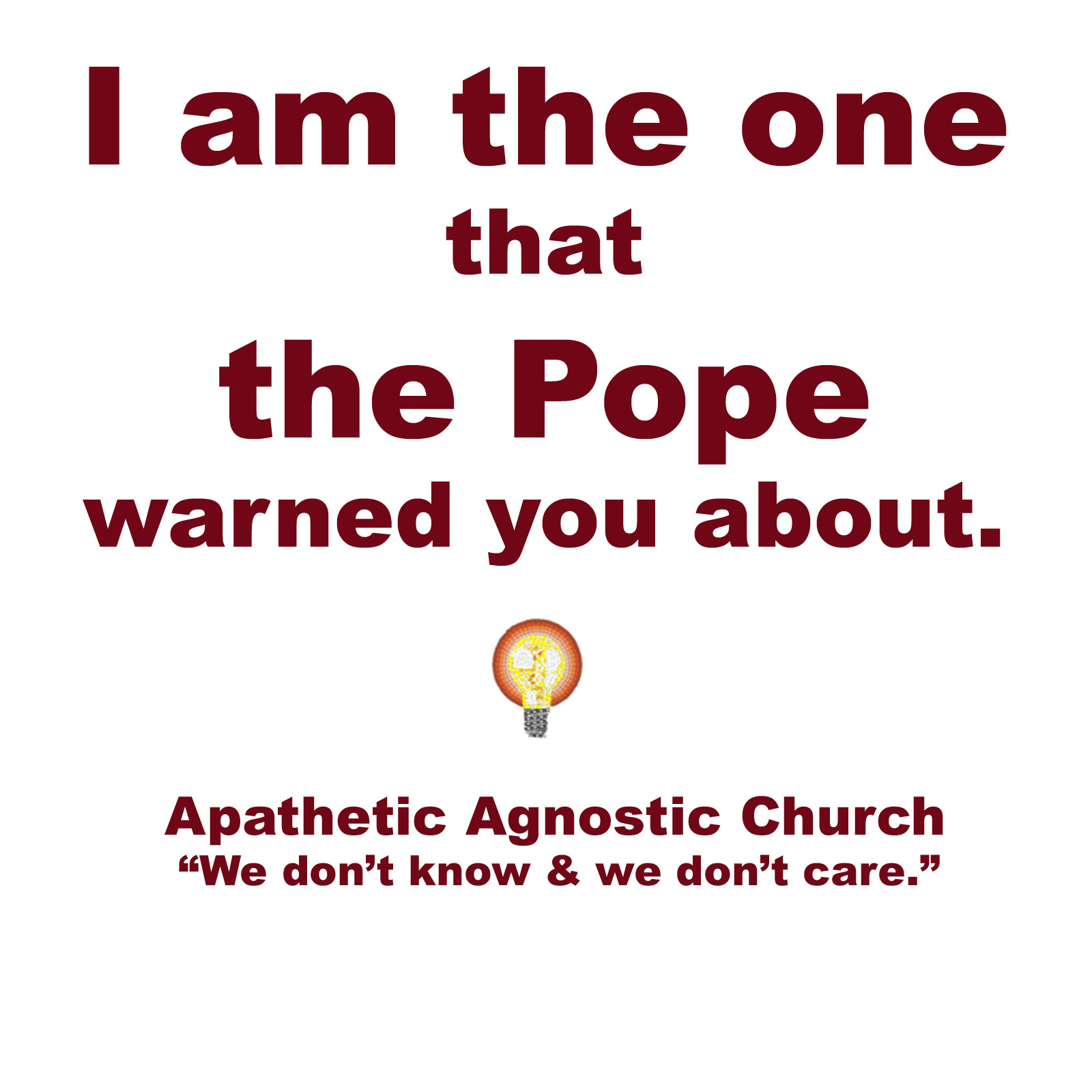 We recognize that not everyone is prepared to pay good money to promote their lack of faith. So we are making available a small selection of graphics which you can use to make your own posters, T-shirts (we assume you can manage reversing the graphic,) postcards, or whatever. The graphics are not as high a resolution as those in the store, so you won’t achieve the same quality, but they are free.