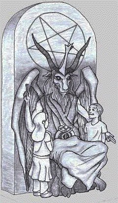 An organization known as The Satanic Temple with a mission to “encourage benevolence and empathy” was first off the mark by applying to place their own monument on the state capitol grounds. (Artist’s rendering at left.) It is proposed as a seven foot (two metre) high statue of a seated Satan flanked by two children, and visitors will be able to sit in Satan’s lap.